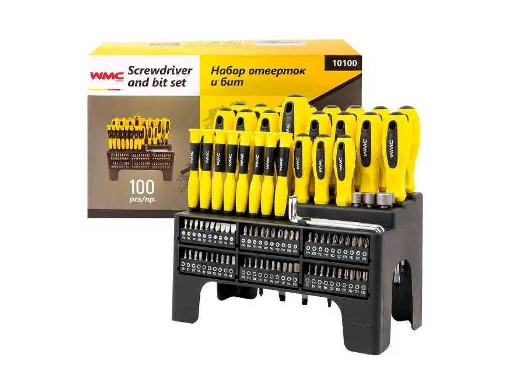 Praktická a prehľadná sada 100 kusov skrutkovačov , bitov, nástavcov a príslušenstva, usporiadaná v stabilnom stojane. Obsahuje širokú škálu plochých, krížových, Torx, štvorcových aj presných skrutkovačov, spolu s bitmi všetkých bežných typov. Ideálne pre každého domáceho majstra aj profesionála, ktorý chce mať všetko potrebné po ruke.
