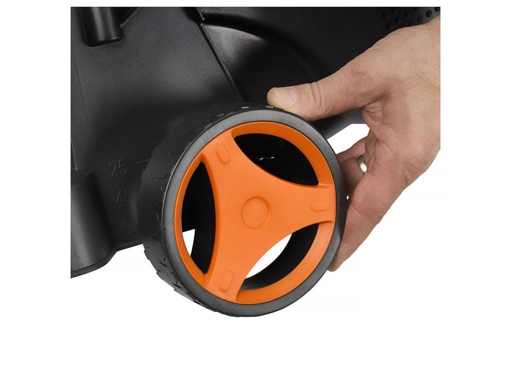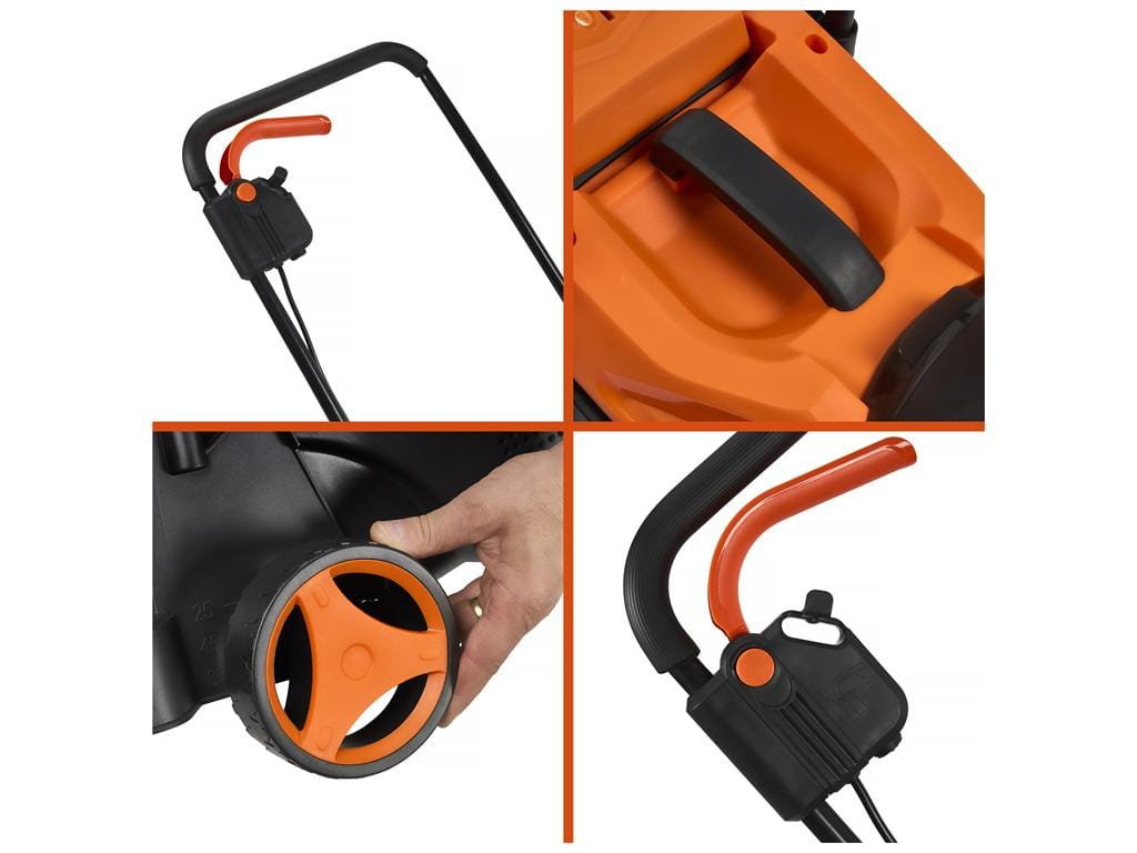 Zariadenie je vybavené priestranným 30-litrovým košom na pokosenú trávu. Konštrukcia koša je starostlivo premyslená, vyrobená z plastu a má praktické úchyty na prenášanie.