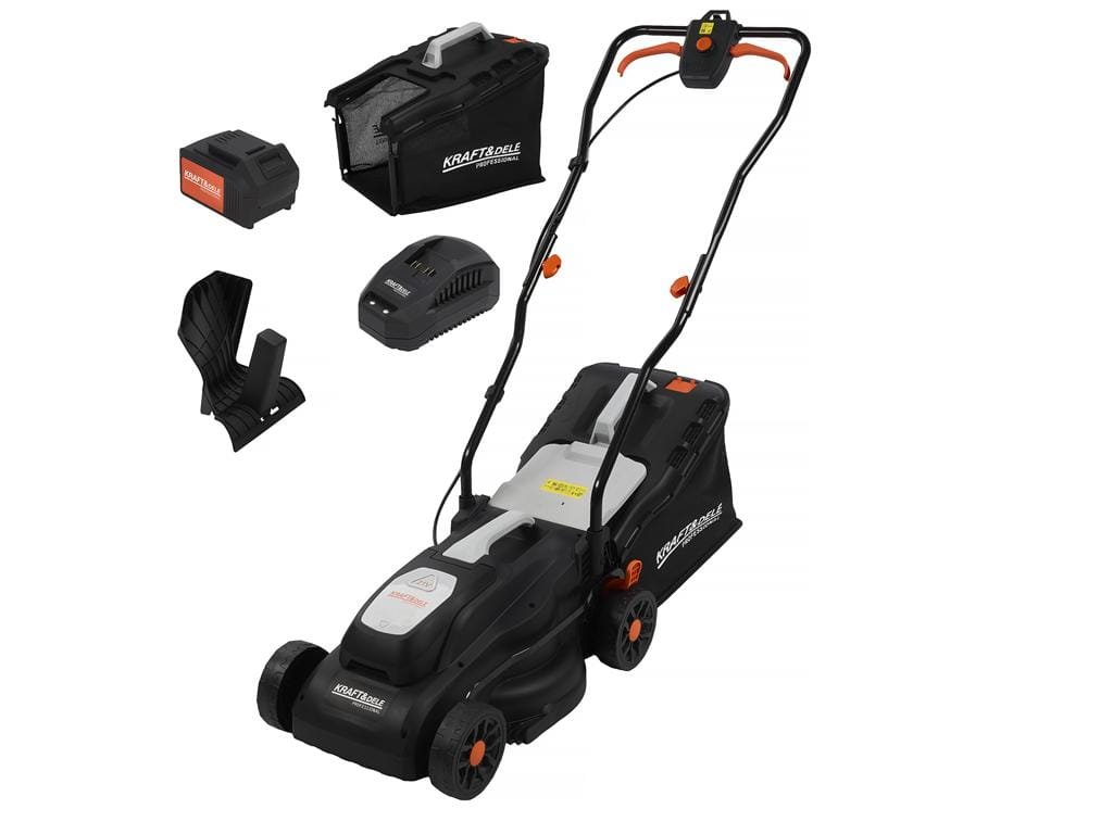 Moderná a výkonná akumulátorová kosačka značky KRAFT&DELE, model KD5550, s nabíjačkou a batériou je nevyhnutným pomocníkom pre každú domácu záhradu aj záhradku!