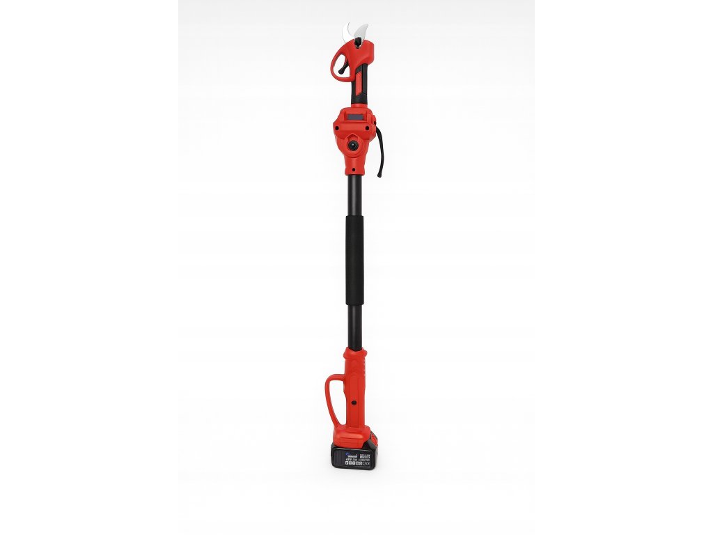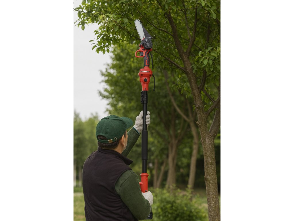 - 4v1: aku teleskopická píla, záhradné nožnice, prerezávač vetiev a teleskopický nadstavec