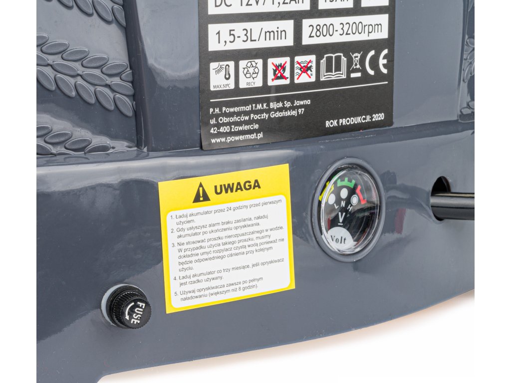 Aby bolo zabezpečené vedomie o stave nabitia akumulátora, je postrekovač vybavený LED diódami, ktoré svietia v 3 farbách, informujúcich o zostávajúcej kapacite akumulátora pred jeho úplným vybitím.
