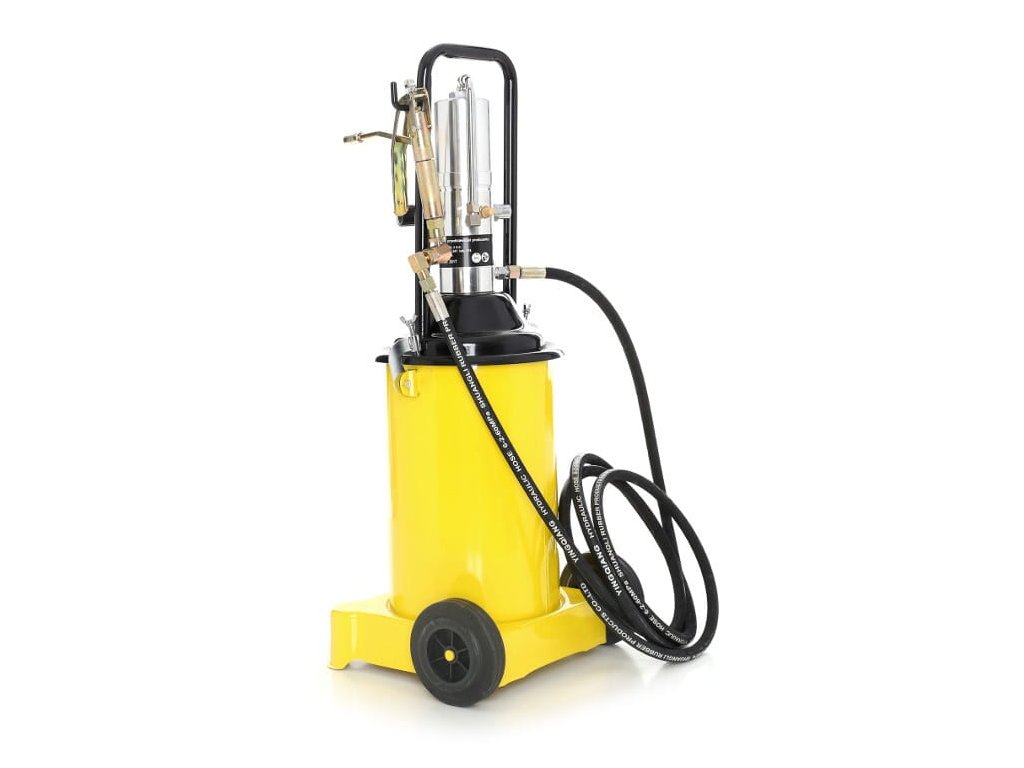 Kolieska priložené v sade zvyšujú mobilitu a komfort pri používaní zariadenia. Mazacia pištoľ je veľmi jednoduchá na obsluhu.