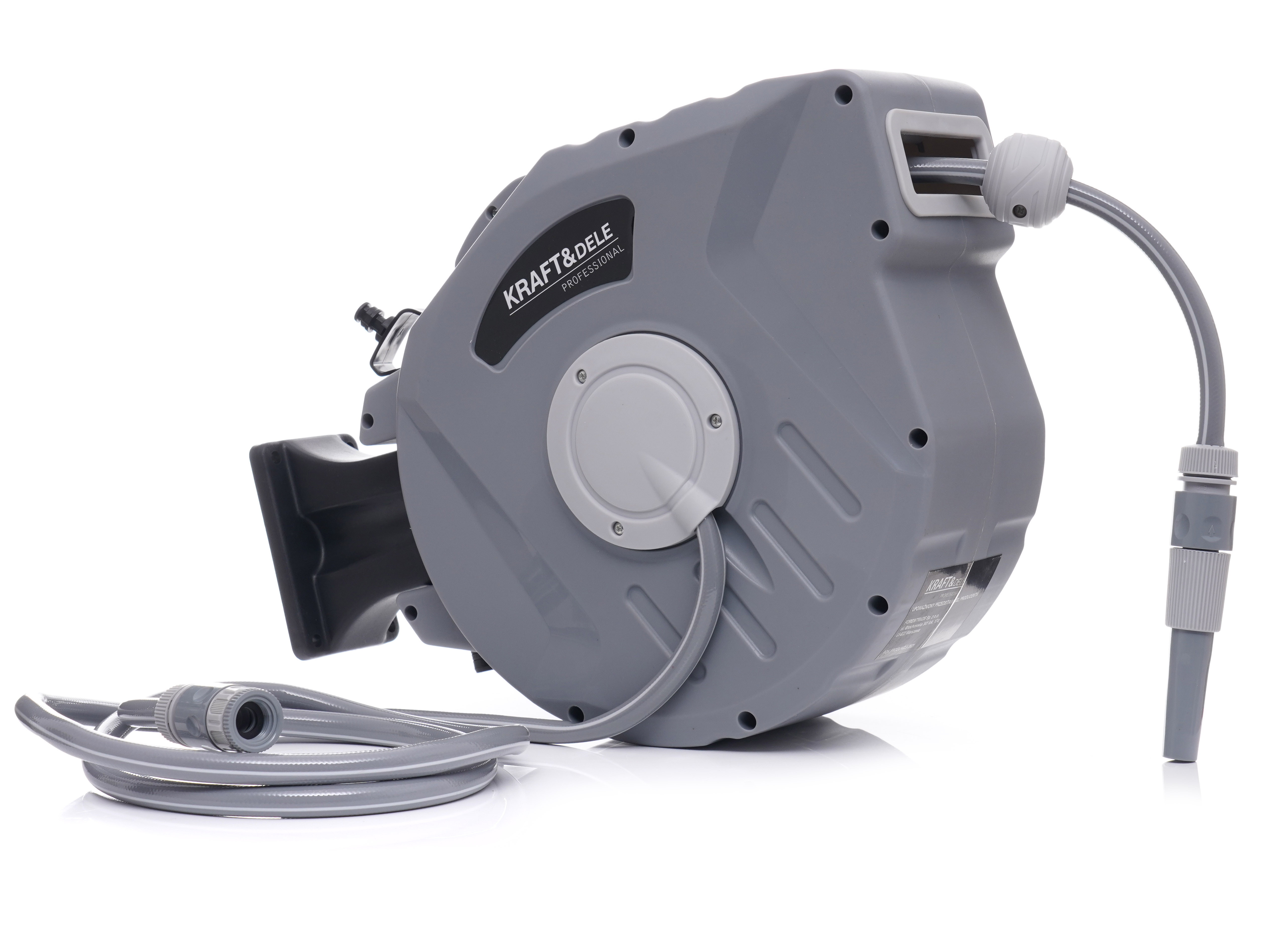 Automatický navijak na záhradnú hadicu 20 m + 2 m 1/2" KD2083 značky Kraft&Dele je určený pre každého, kto ocení pohodlie. Navijak má mechanizmus umožňujúci automatické navíjanie hadice a tiež zámok, ktorý umožňuje zvoliť požadovanú dĺžku. Vďaka veľmi pohodlnej rukoväti a nízkej hmotnosti 3,5 kg ho môžeme jednoducho prenášať.