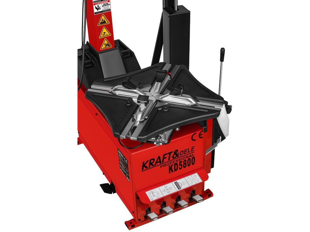 Profesionálny montážny stroj na pneumatiky KD5800 značky Kraft&Dele je zariadenie navrhnuté pre intenzívnu prevádzku v dielňach a vulkanizačných servisoch. Vďaka prídavnému ramenu a automatickému ovládaciemu systému výrazne zvyšuje efektivitu práce a komfort obsluhy. Robustná konštrukcia, vysoká sila demontážneho ramena a široký rozsah podporovaných ráfikov zabezpečujú, že prístroj si poradí aj s tými najnáročnejšími kolesami.
