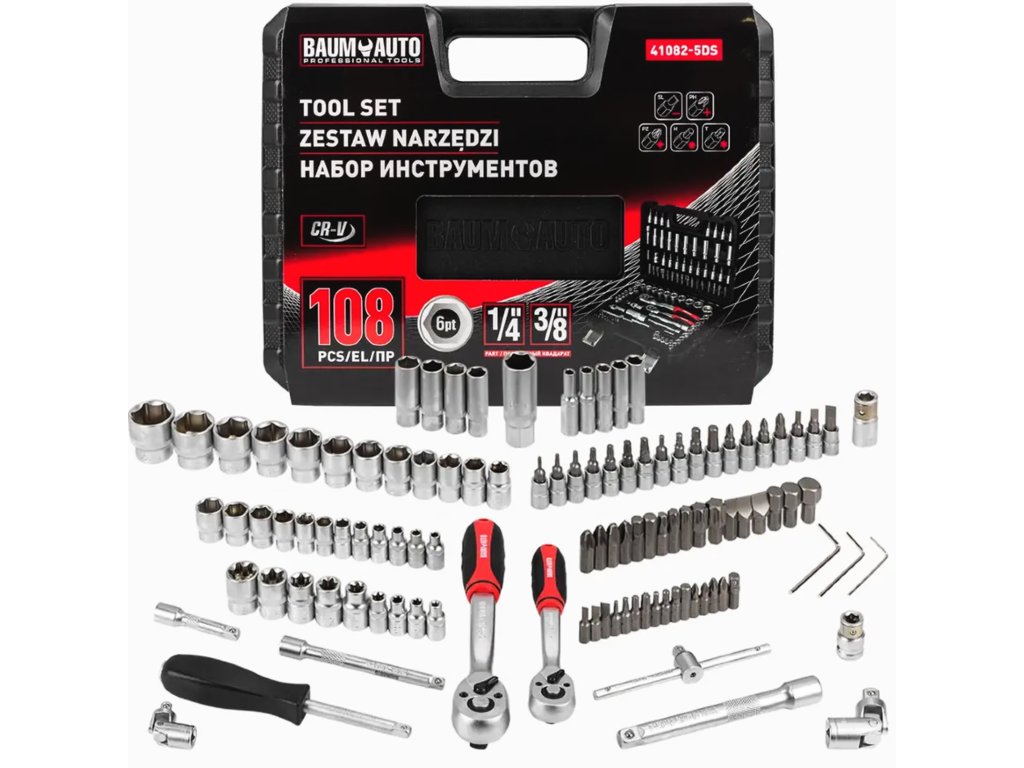 Baumauto Sada náradia, veľká, 108 dielov, 6-hranné nástrčné hlavice 1/4" a 3/8", 4-22 mm