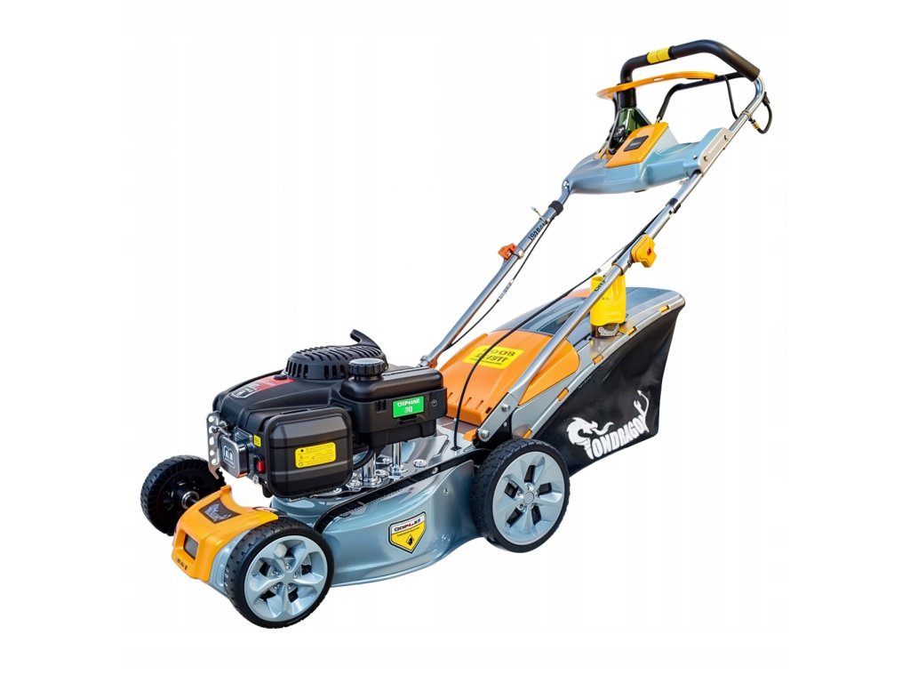 - Výkonný benzínový motor: 4-taktný motor s výkonom 6 HP poskytuje dostatočnú silu pre efektívne kosenie aj hustej trávy.