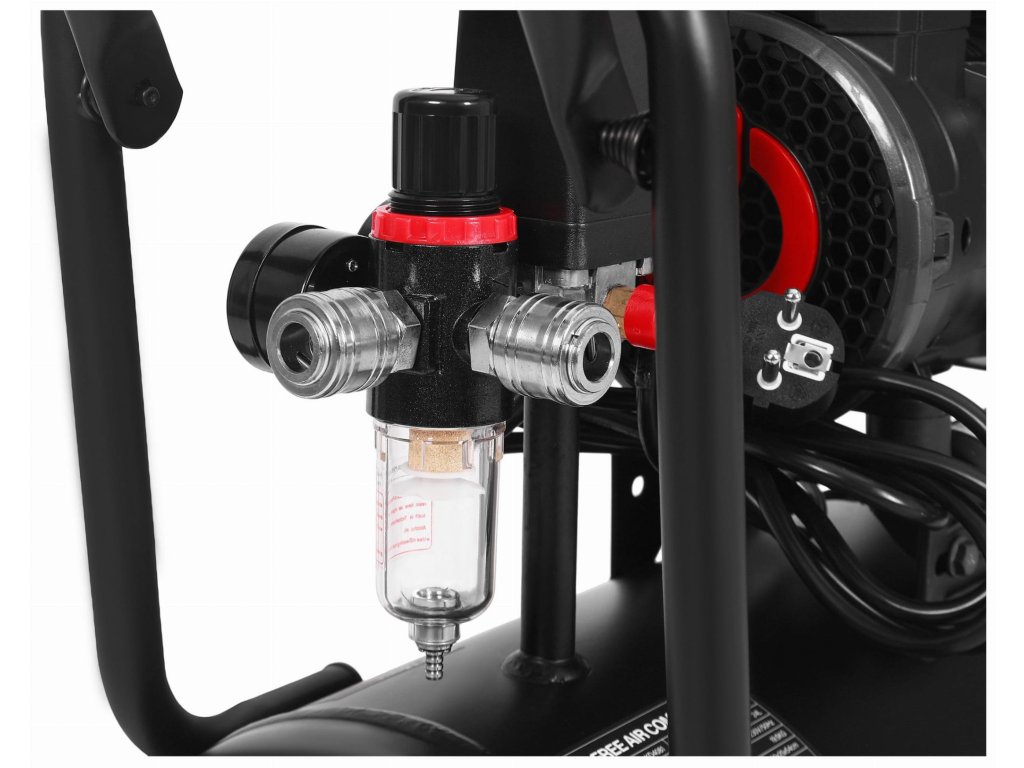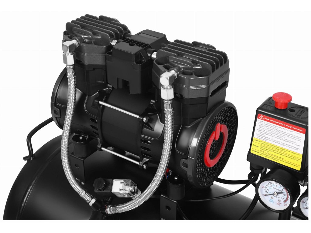 Výkonný bezolejový kompresor s objemom 50 litrov je ideálnou voľbou pre dielne aj domáce využitie tam, kde je potrebný čistý a stabilný prísun stlačeného vzduchu bez olejových zvyškov. Vďaka výkonnému motoru s príkonom 2500 W a maximálnemu prietoku 290 l/min zvládne ľahko poháňať pneumatické náradie, zatiaľ čo tichá prevádzka a prehľadné ovládanie zaisťujú pohodlie pri každodennom používaní. Pevná konštrukcia s kovovým držadlom a veľkými kolieskami uľahčuje transport, bezúdržbová konštrukcia potom šetrí čas aj starosti.