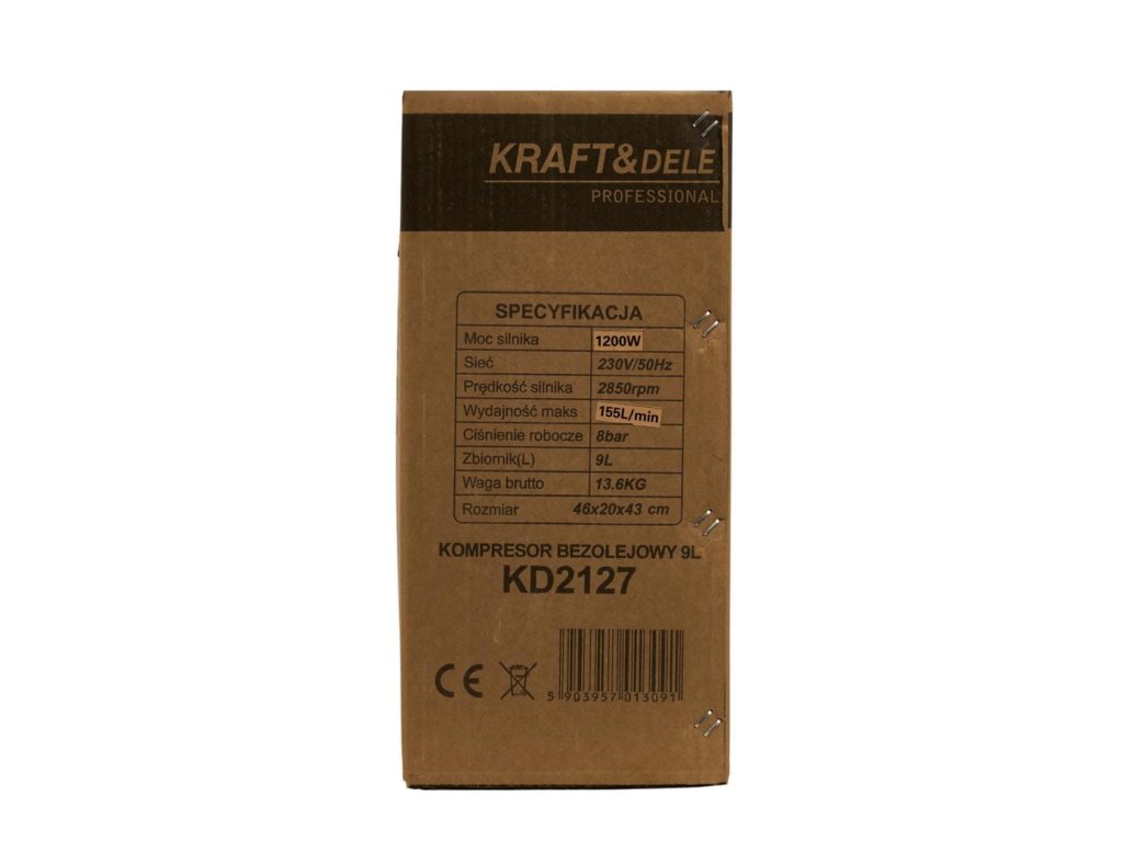 Bezolejový kompresor Kraft&Dele sa vyznačuje maximálnym tlakom až 8 bar.