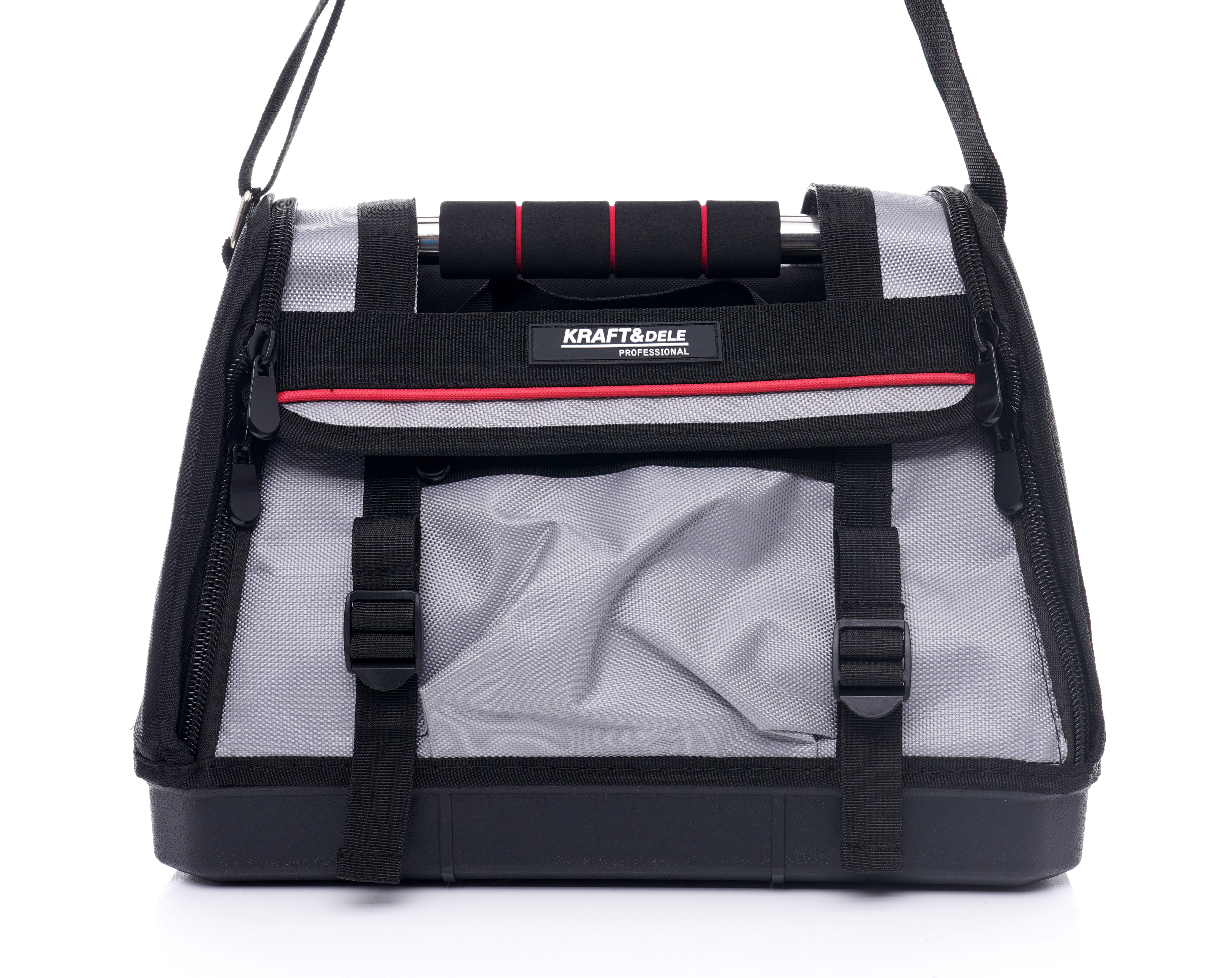 Taška na náradie, montérska značky Kraft&Dele je ideálnym organizérom pre všetkých montérov (elektrikárov, inštalatérov, obkladačov a pod.). Pevné dno pokryté kompozitným materiálom zaručuje odolnosť a množstvo vreciek prináša poriadok a rýchly prístup k potrebnému náradiu.