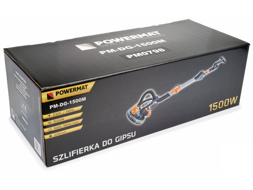 Bezprášná kloubová bruska typu ŽIRAFA POWERMAT PM-DG-1500M je ideálnym nástrojom na precízne brúsenie sadrových omietok na stenách, strope a vo vyšších ťažko prístupných miestach.