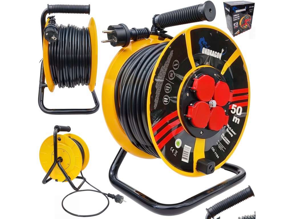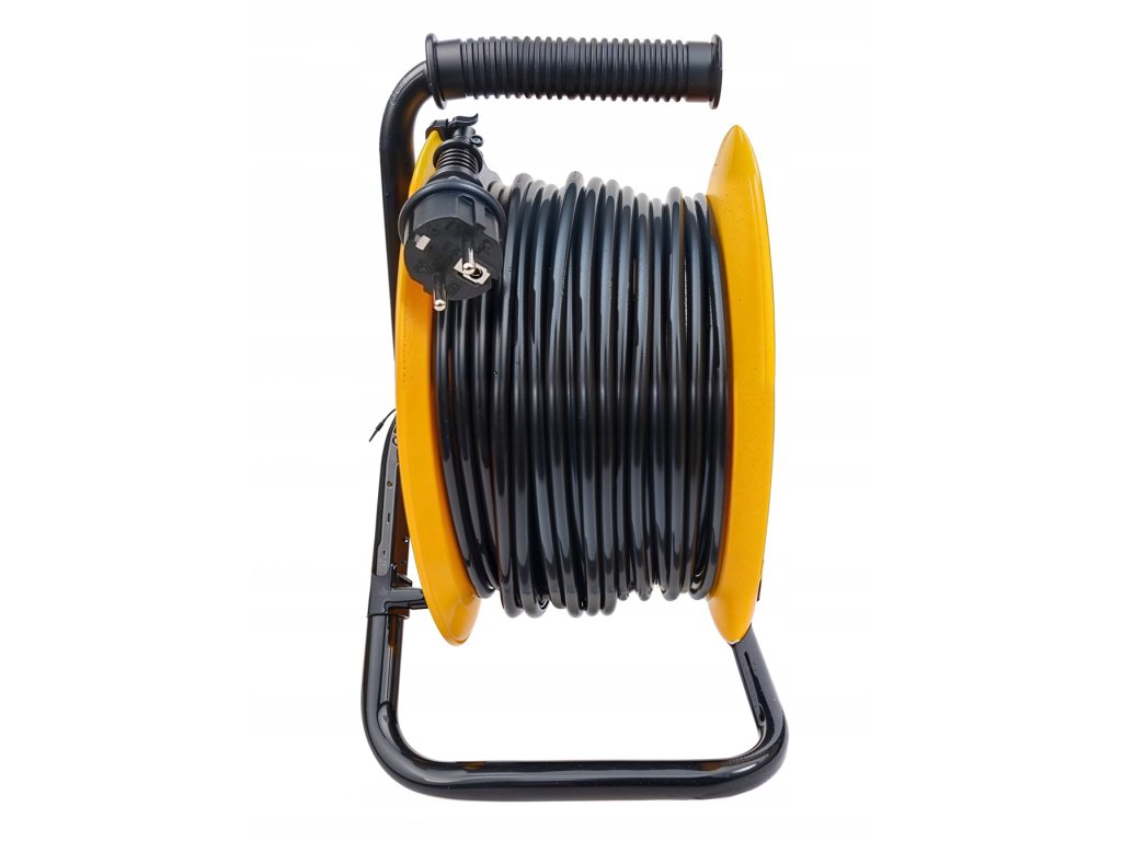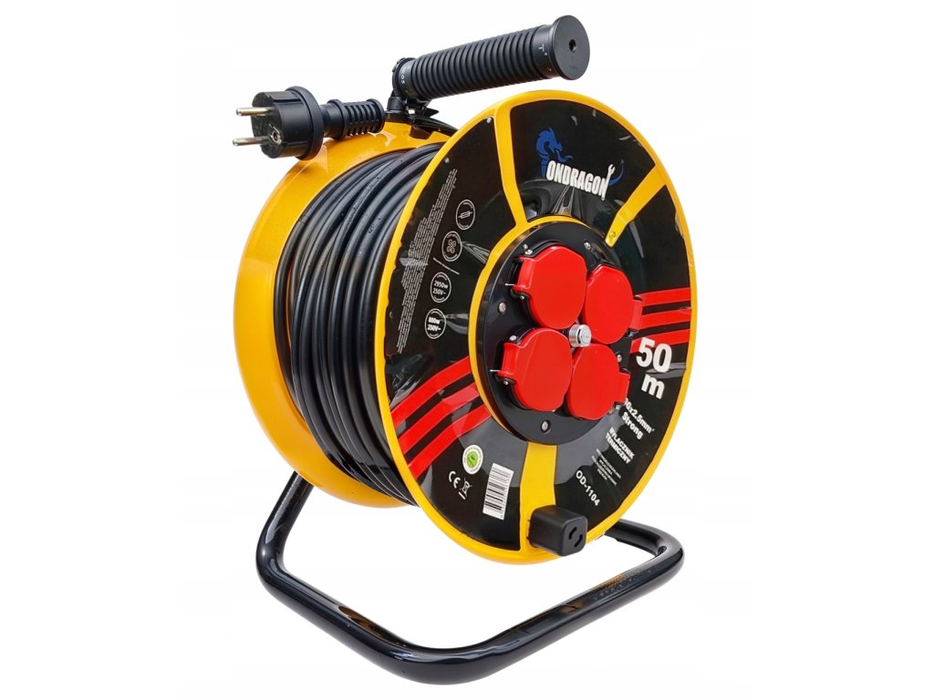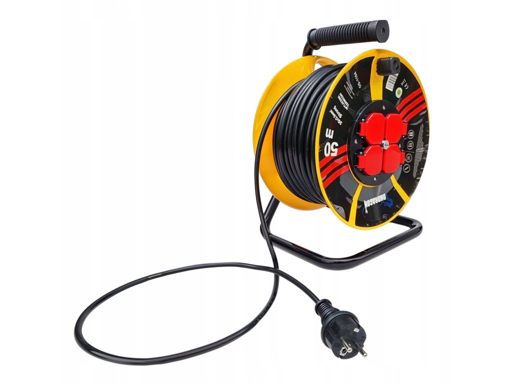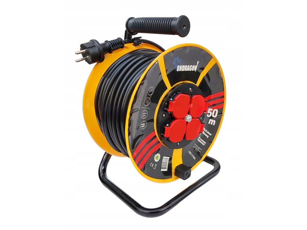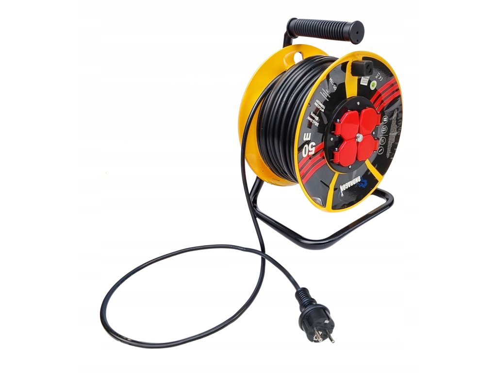 Odolný bubnový predlžovací kábel s dĺžkou 50 ma prierezom vodiča 3×2,5 mm² je ideálny pre použitie na stavbách, v dielňach, garážach aj na záhrade . Vďaka kovovému rámu a pevnej PVC izolácii je chránený proti mechanickému poškodeniu, poveternostným vplyvom aj chemikáliám, ako sú oleje a benzín.