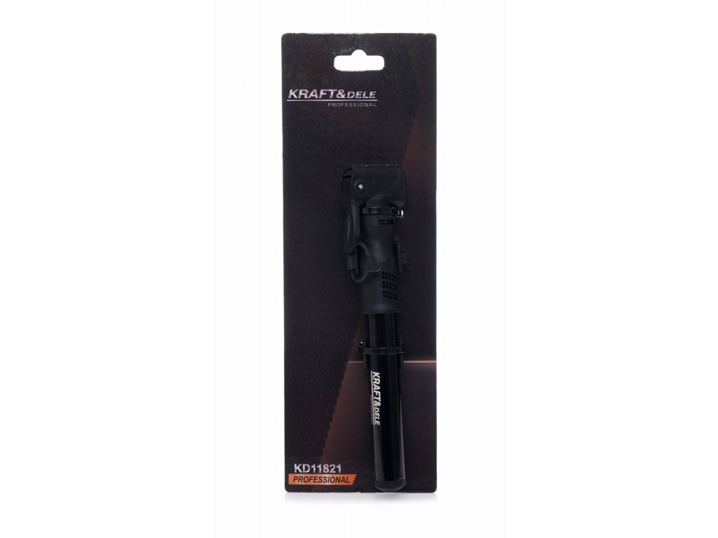 Ručná pumpa na bicykel značky Kraft&Dele model KD11821 určená na rýchle nafúkanie alebo doplnenie pneumatík. Má univerzálnu hlavu pre ventily Presta a Schrader.