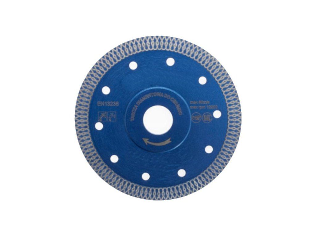 Kotúč má diamantový vrúbkovaný okraj so súvislým obvodom, čo zaručuje veľmi efektívnu prácu a hladké zakončenie hrán.