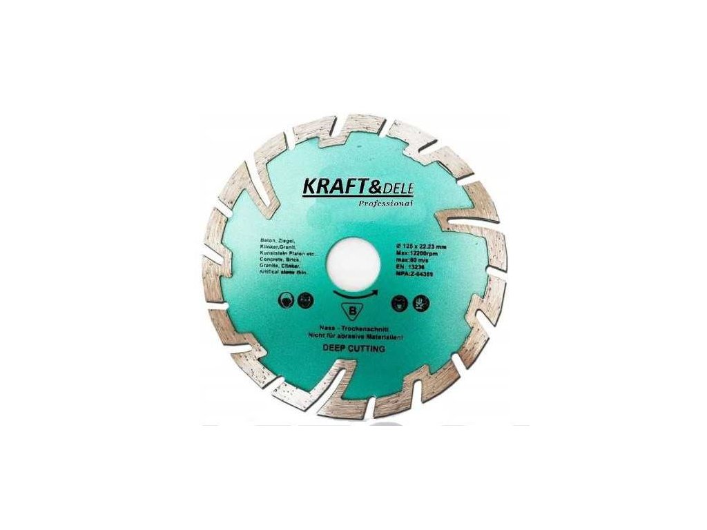 Kotúč má diamantový rýhovaný korunový segment s uzavretým obvodom, čo zabezpečuje veľmi efektívnu a účinnú prácu a hladké dokončenie okrajov.