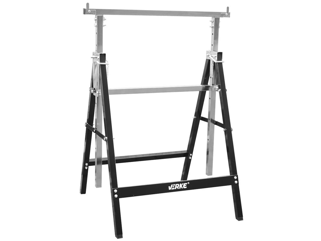 Táto pracovná podpera s nastaviteľnou výškou v rozmedzí cca 79 – 130 cm je ideálnym riešením pre rôzne stavebné, renovačné a dielenské práce. Nohy sú vyrobené z pozinkovaného oceľového plechu s profilom 25 x 25 mm a lakovaný povrch zaisťuje odolnosť a dlhšiu životnosť zariadenia.
