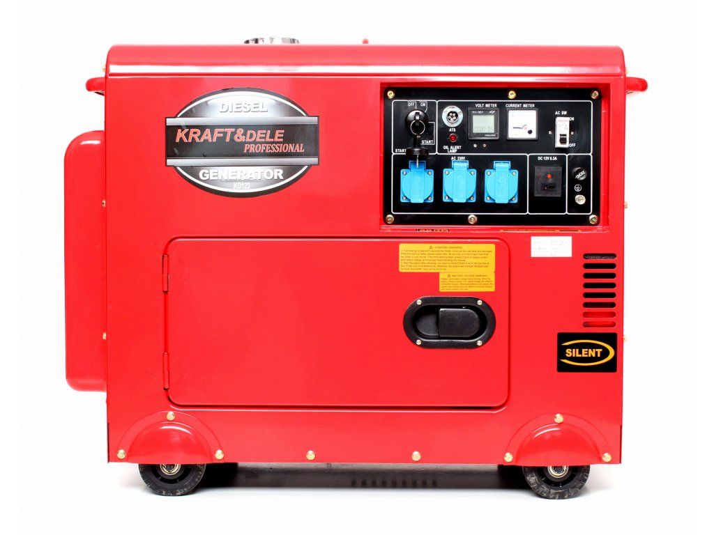 Jednofázová elektrocentrála KD123 značky Kraft&Dele je určená na výrobu striedavého prúdu 220V-230V pomocou výkonného dieselového spaľovacieho motora a generátora s výkonom 7000W. Elektrocentrála je ideálna na použitie na stavbách či v prevádzkach, všade tam, kde je potrebný stabilný a silný zdroj elektrickej energie. Motor disponuje chrómovaným piestom, vďaka čomu pracuje veľmi ticho a rovnomerne, pritom je úsporný. Gumové stabilizátory a motorové podložky zaisťujú tlmenie vibrácií a minimalizáciu hluku. Zariadenie je vybavené elektrickým štartérom, voltmetrom, výstupom 12V pre nabíjanie akumulátora, regulátorom napätia AVR a automatickým spínačom ATS, ktorý umožňuje automatickú prevádzku elektrocentrály. Udržuje konštantné výstupné napätie bez ohľadu na zaťaženie.