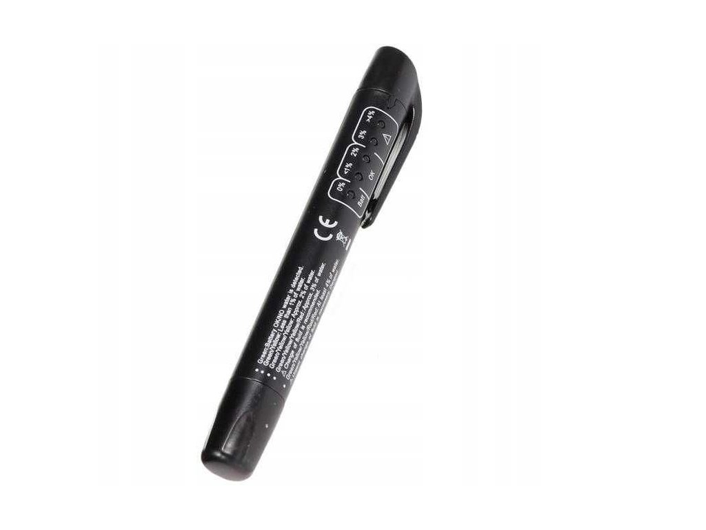 Tester meria percentuálny podiel vody v brzdovej kvapaline. Brzdová kvapalina by nemala obsahovať viac ako 2 % vody.