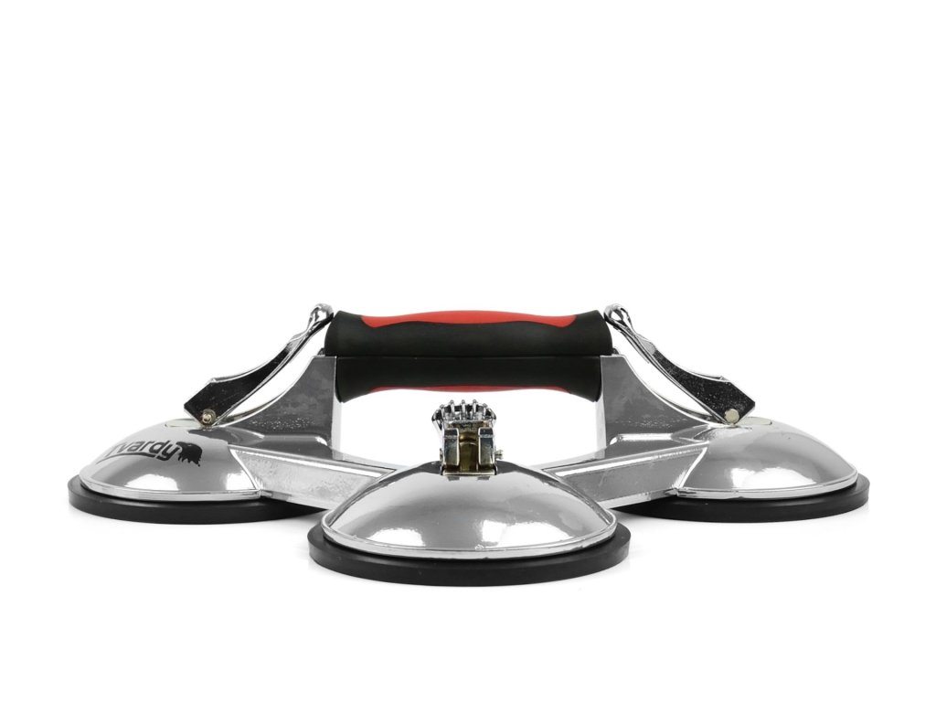 Hliníkový držiak s prísavkami je určený na prenášanie predmetov s hladkým a rovným povrchom, ako sú napríklad sklo, okná, autoskla, plechy, lamináty a dlaždice. Jeho maximálna nosnosť je 190 kg.