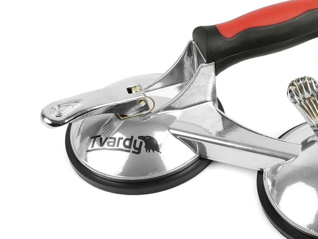 Vysoko kvalitné gumy prísaviek, aktivované pomocou páčok, zabezpečujú bezpečné a spoľahlivé prenášanie predmetov. Telo držiaka je vyrobené z vysoko kvalitnej hliníkovej zliatiny, zatiaľ čo rukoväť je pokrytá protiskluzovým plastovým materiálom, čo uľahčuje manipuláciu.