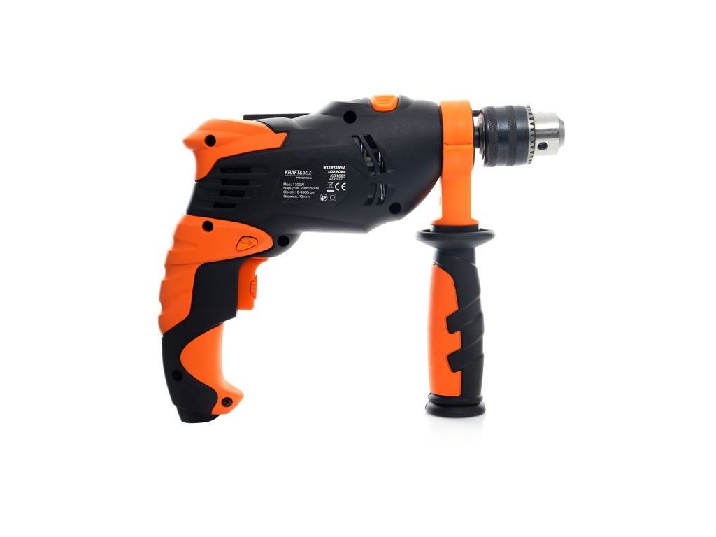 Elektrická príklepová vŕtačka Kraft&Dele KD1685 s výkonom 1700W je určená na úderové vŕtanie do múrov, betónu a kameňa, ako aj na vŕtanie do kovu, keramiky, dreva a plastu. Hlavná rukoväť je vyrobená z protišmykového materiálu, čo uľahčuje držanie zariadenia v ruke. Toto je verzia vybavená dodatočnou bočnou rukoväťou. Hlava je vyrobená z plastu.