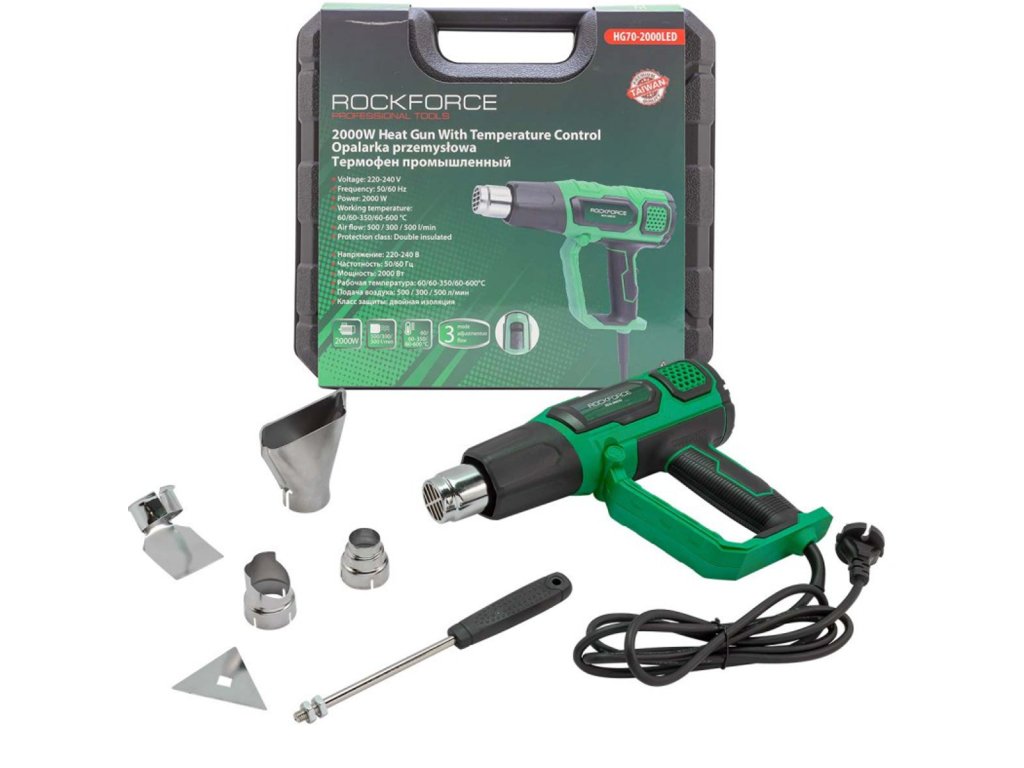 Elektrická teplovzdušná pištoľ, 2 rýchlosti, 4 trysky, 600 ° C, 2000 W
