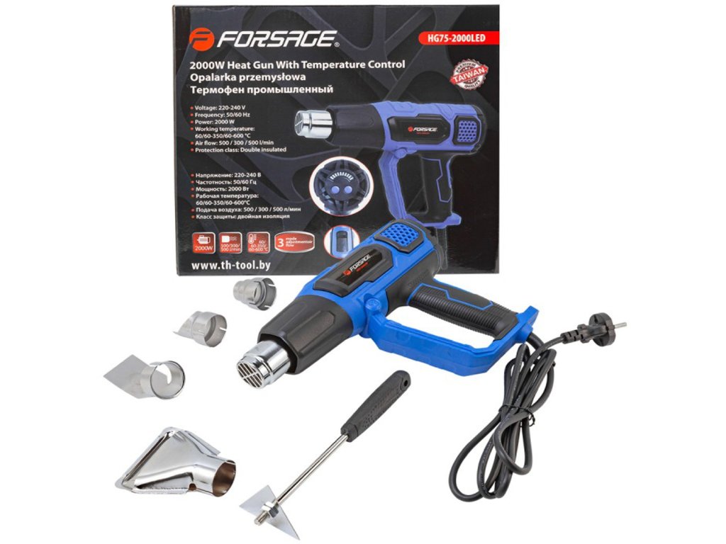 Elektrická teplovzdušná pištoľ, 2 rýchlosti, 4 trysky, max. 600 °C, 2000 W