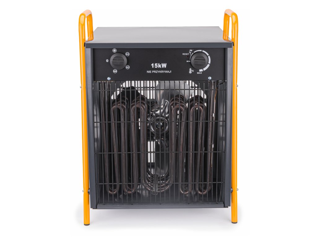 Tento typ elektrických ohrievačov je vybavený mnohými vylepšeniami, ktoré majú taktiež významný vplyv na bezpečnosť použitia. Majú systém chrániaci motor proti prehriatiu. Čo viac, ich kompaktná konštrukcia a rukoväť umiestnená na vrchnej časti robustného puzdra výrazne uľahčujú prenášanie. Studený vzduch je nasávaný do zariadenia ventilátorom a je smerovaný k výstupu ohrievača, kde je vyhrievaný vysoko kvalitnými vykurovacími telesami. Teplý vzduch vychádza z prednej časti.