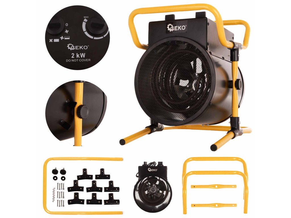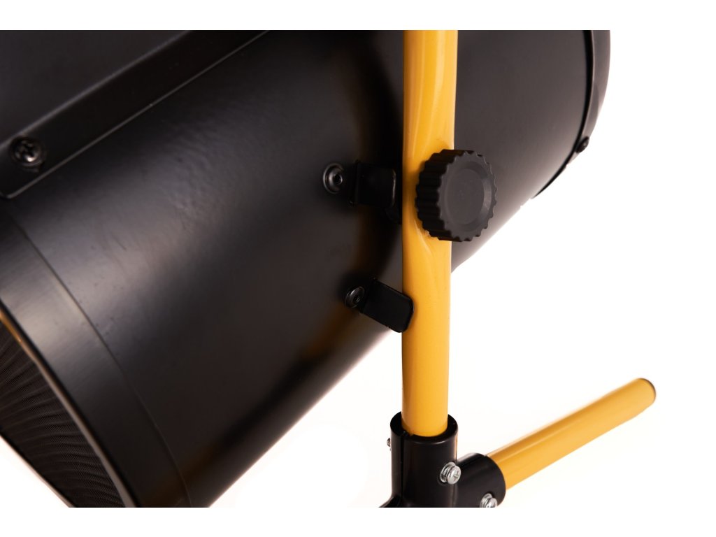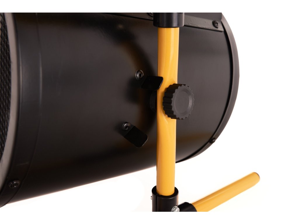 Termostat umožňuje presnú kontrolu úrovne tepla, prispôsobujúc ju aktuálnym potrebám. Pevná kovová konštrukcia so dva pohodlnými madlami uľahčuje prenášanie ohrievača, a nastavenie uhla fúkania s blokovaním zabezpečuje pohodlnú obsluhu.