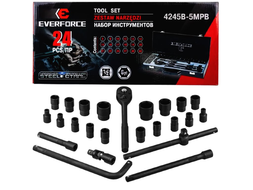 EVERFORCE Sada nástrčných hlavíc 1/2", 6hranné, 8-32 mm, 24 dielov + kufrík