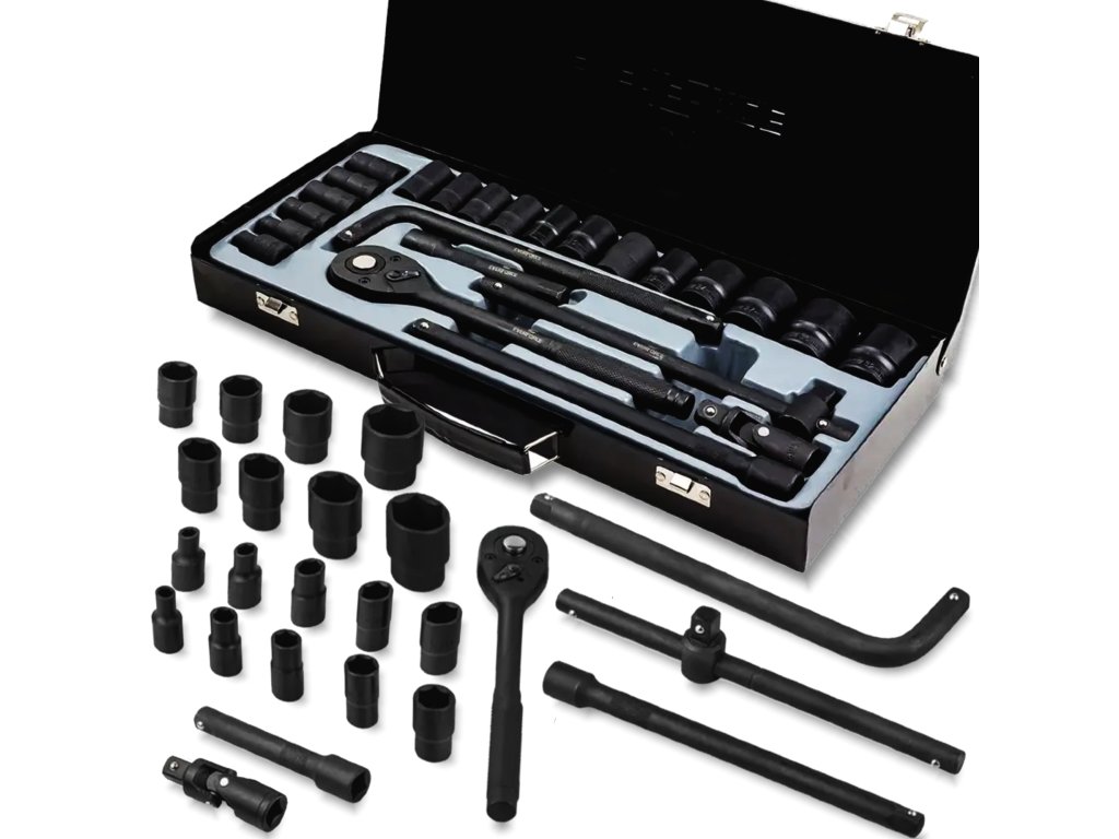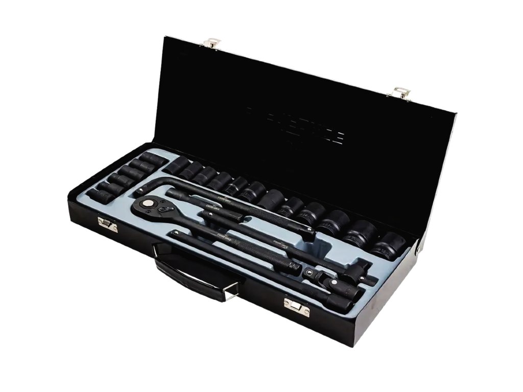Profesionálna sada nástrojov 1/2" 24 dielov (6-hranné) je ideálnou voľbou pre každého, kto si cení spoľahlivosť, odolnosť a komfort práce. Obsahuje kompletnú sadu nástrojov určených na montáž aj demontáž väčších závitových spojov - ako v profesionálnych dielňach, tak v domácom garáži.