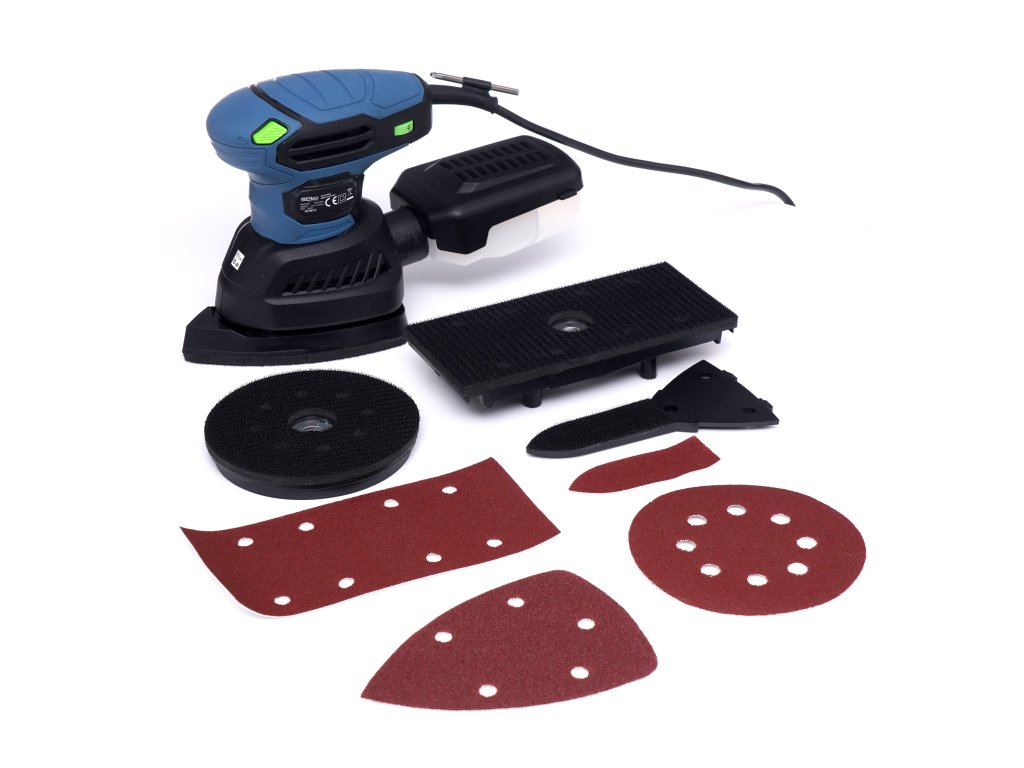 Výmenná frezovanie brusného papiera prebieha bez použitia náradia, kotúče sú upevnené na suchý zips. Súčasťou balenia je taktiež sáčok na prach, vďaka čomu je práca čistá.