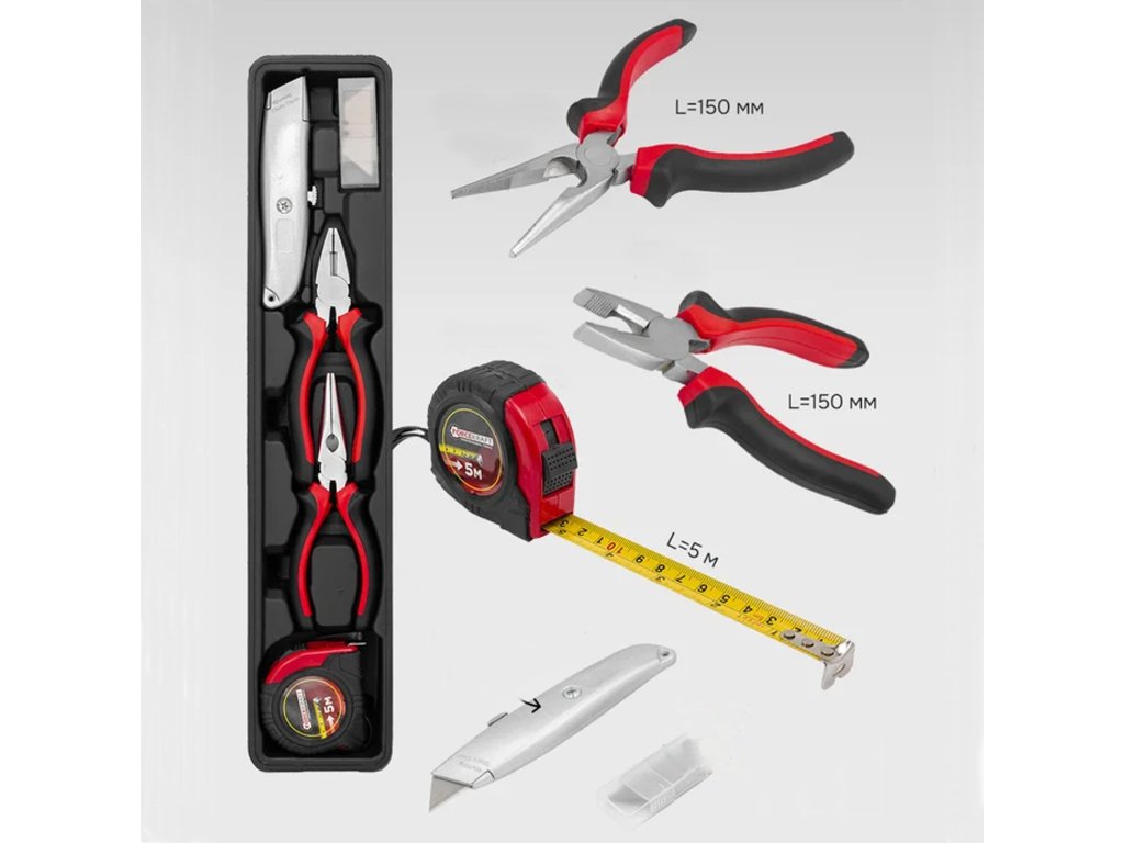 Táto časť sady umožňuje rýchle montážne práce, rezanie, držanie a meranie. Praktické nástroje, ktoré sa osvedčia pri každodennom použití doma aj v dielni.