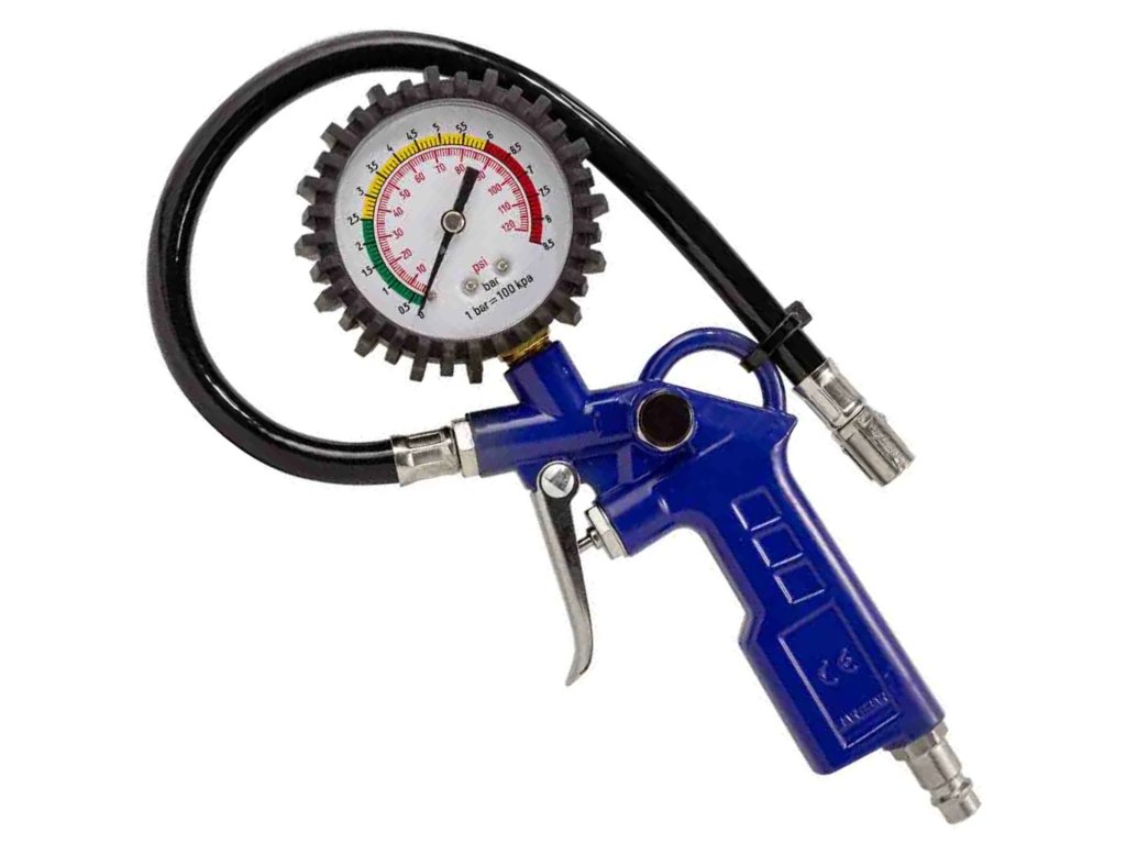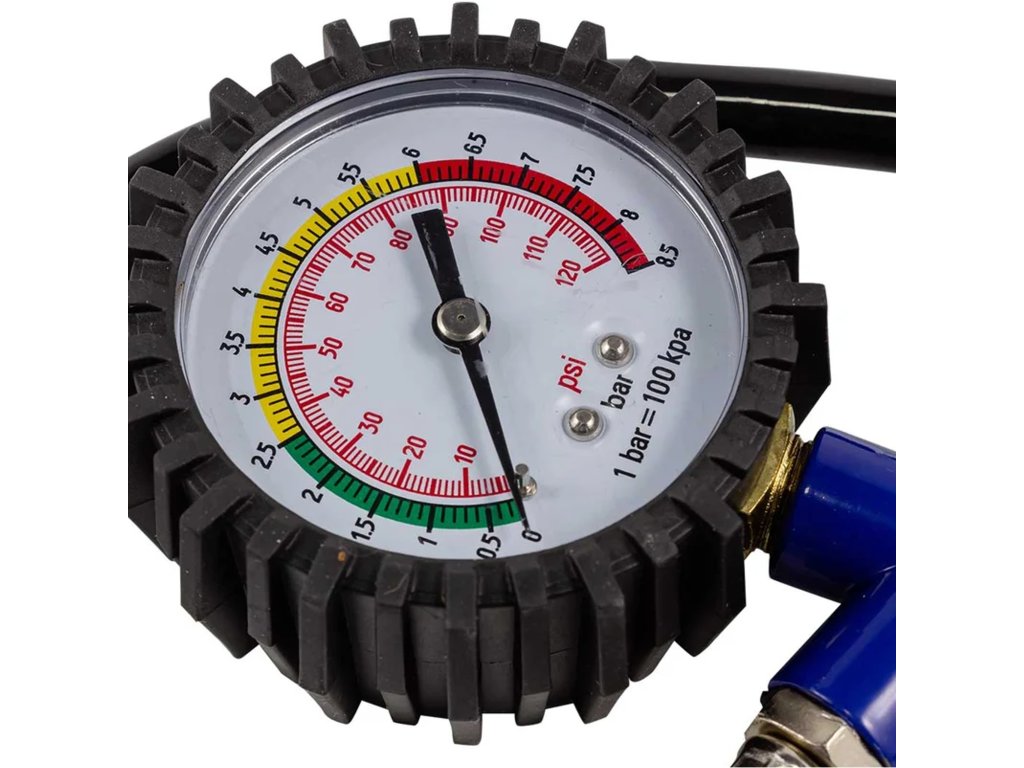 - ✔️ Pištoľ na hustenie pneumatík s manometrom 0–8,5 bar