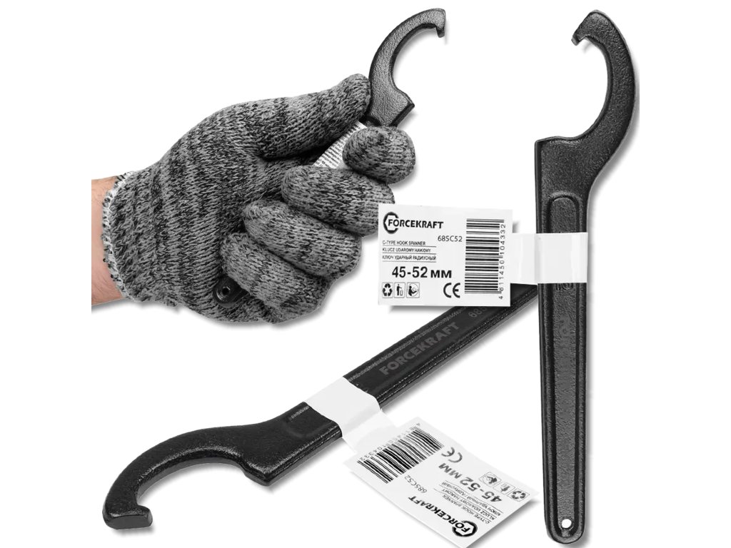 FORCEKRAFT Rázový radiálny háčikový kľúč, 45–52 mm, Cr-Mo