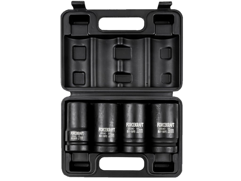 FORCEKRAFT Sada 4 hlbokých rázových hlavíc 1" 12hranné 27–36 mm v kufríku