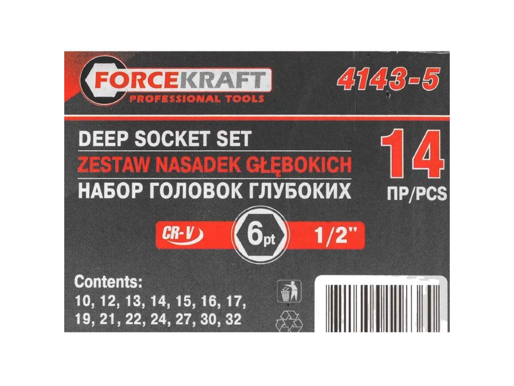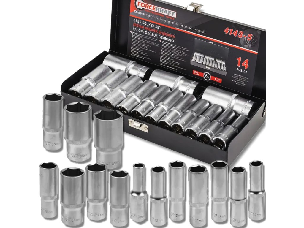 Súprava 14 hlbokých šesťbokých hlavíc FORCEKRAFT je nevyhnutným vybavením každej dielne, či už profesionálnej alebo domácej. Vyrobené z vysoko kvalitnej chróm-vanádiovej ocele (Cr-V), odolné proti korózii, opotrebovaniu a vysokému zaťaženiu. Hlboké prevedenie umožňuje prácu s maticami a skrutkami uloženými na ťažko prístupných miestach.