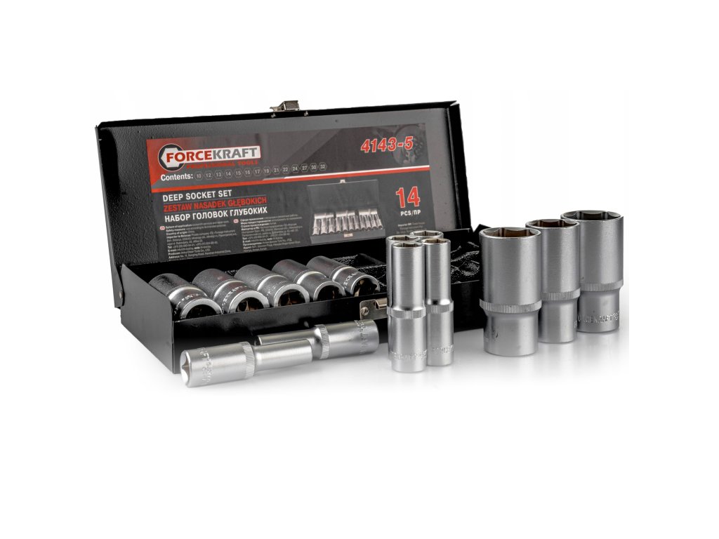 FORCEKRAFT Sada hlbokých nástrčných hlavíc 1/2", 6hranných, 14dielna, s kufríkom