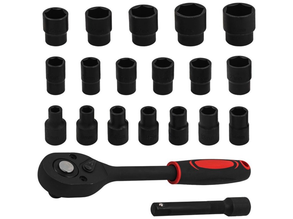 - 18 × šesťhranné hlavice (1/2"): 8 / 9 / 10 / 11 / 12 / 13 / 14 / 15 / 16 / 17 / 18 / 19 / 21 / 22 / 24 / 27 / 30 / 32 mm