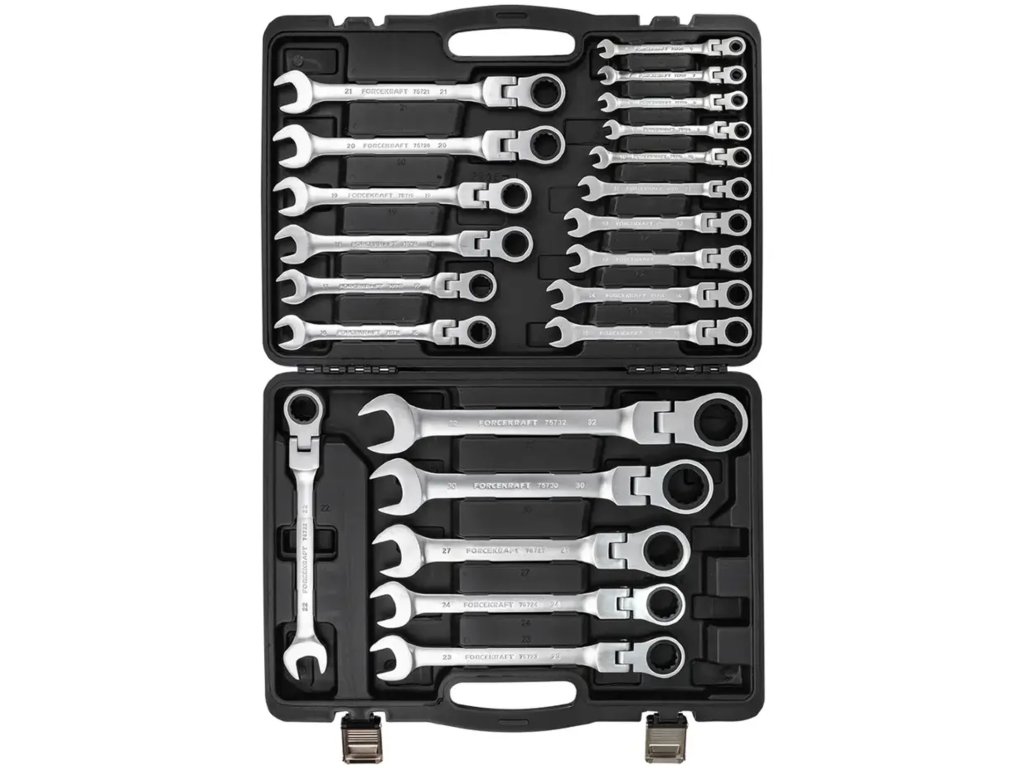 Profesionálna sada očkoplochých kľúčov s kĺbom a račňou Forcekraft je ideálnym riešením pre mechanikov, servisných technikov i náročných domácich majstrov, ktorí vyžadujú kvalitu, odolnosť a komfort práce. Vďaka kombinácii račne, pohyblivého kĺbu a precízneho spracovania z chróm-vanádiovej ocele (Cr-V) sa tento komplet osvedčí ako v autoservisoch, tak pri bežných opravách alebo montážnych prácach a montážach.