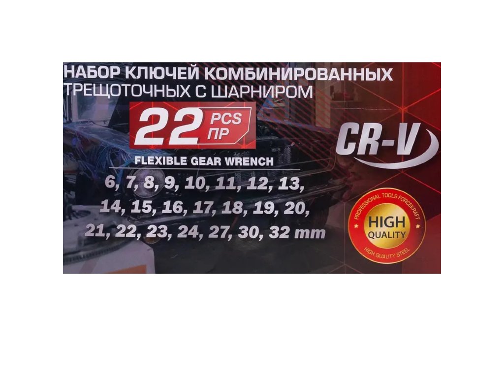 Súprava obsahuje až 22 očkoplochých kľúčov v rozmedzí od 6 do 32 mm, čo umožňuje pohodlné vykonávanie väčšiny mechanických a servisných prác – od drobných domácich opráv cez práce na inštaláciách až po profesionálny servis automobilov či priemyselné využitie.