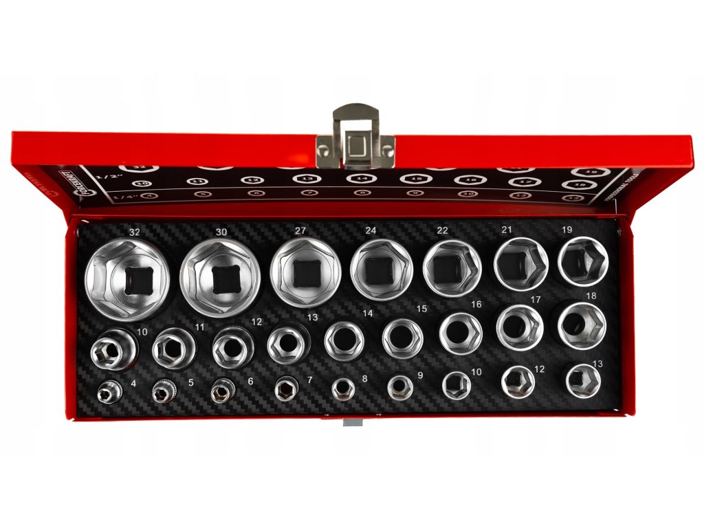 Súprava hlavíc 1/4" a 1/2" 4–32 mm, 6-hranná, 25-dielna
