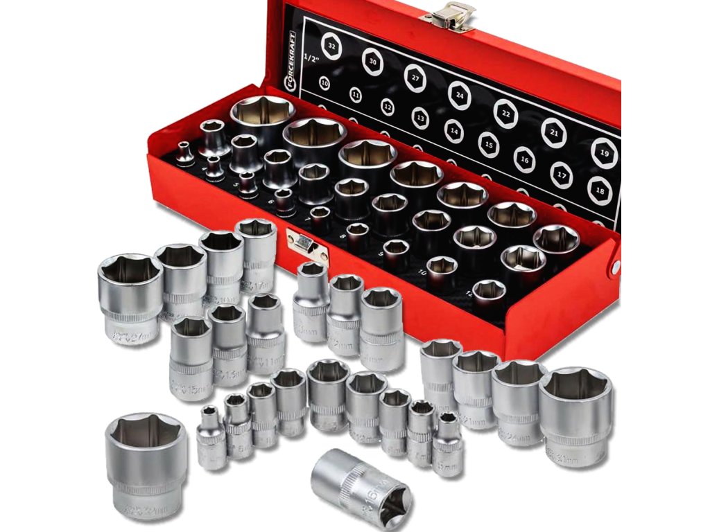 ☑️ Sada obsahuje hlavice v obľúbených veľkostiach od 4 do 32 mm