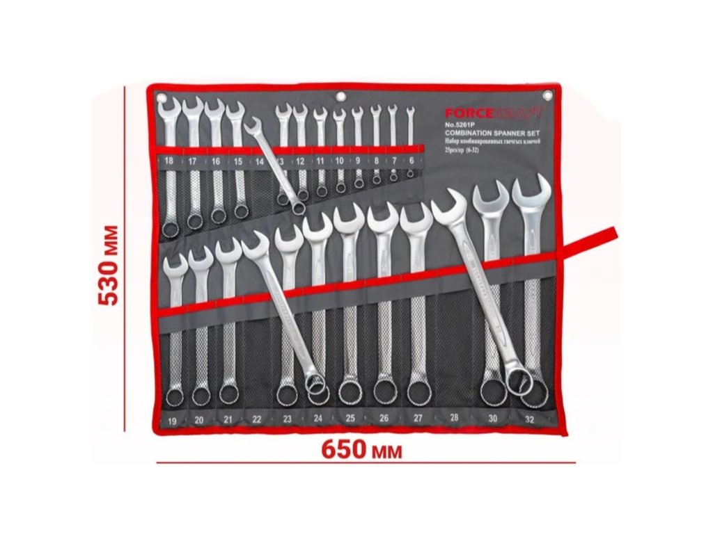 25dielna sada plochých očkových kľúčov značky Forcekraft je vhodná ako pre profesionálnych mechanikov, tak aj pre domácich majstrov vyžadujúcich náradie vysokej kvality. Široký rozsah veľkostí od 6 mm do 32 mm umožňuje univerzálne použitie – od drobných domácich opráv, cez servis vozidiel, až po náročné dielenské a priemyselné práce.
