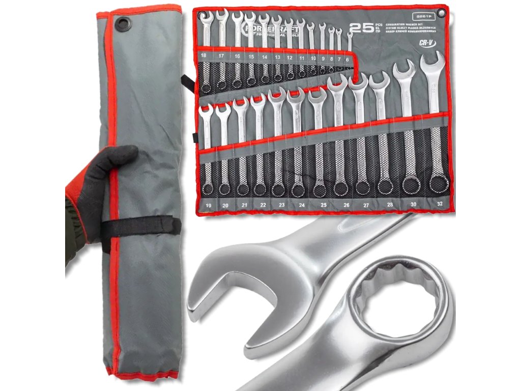 FORCEKRAFT Súprava plochých očkových kľúčov 25 ks, 6–32 mm, v plátennom puzdre
