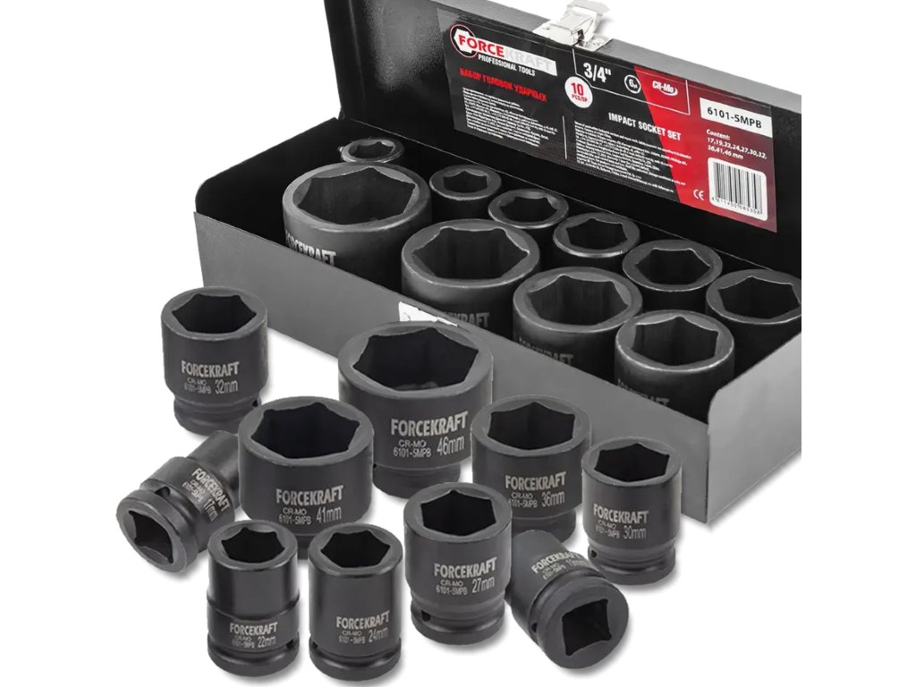 FORCEKRAFT Súprava rázových hlavíc 3/4" 10 ks, 6-hranné (17–46 mm)
