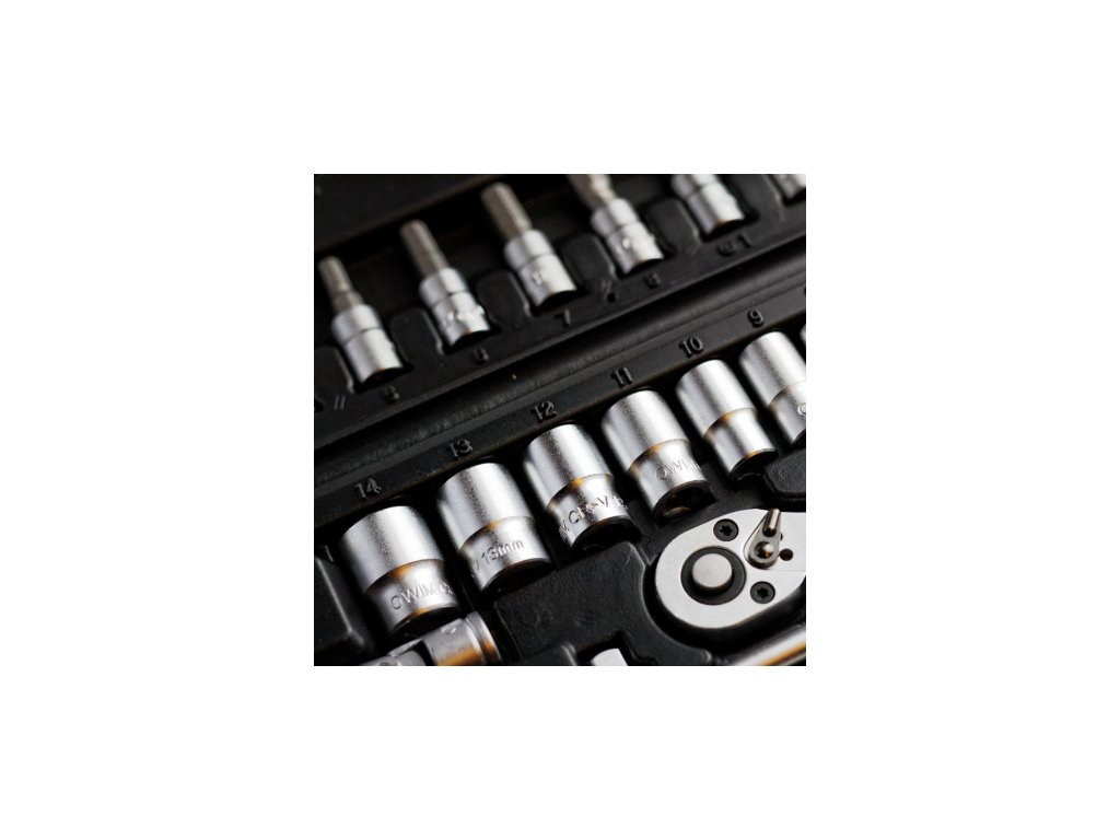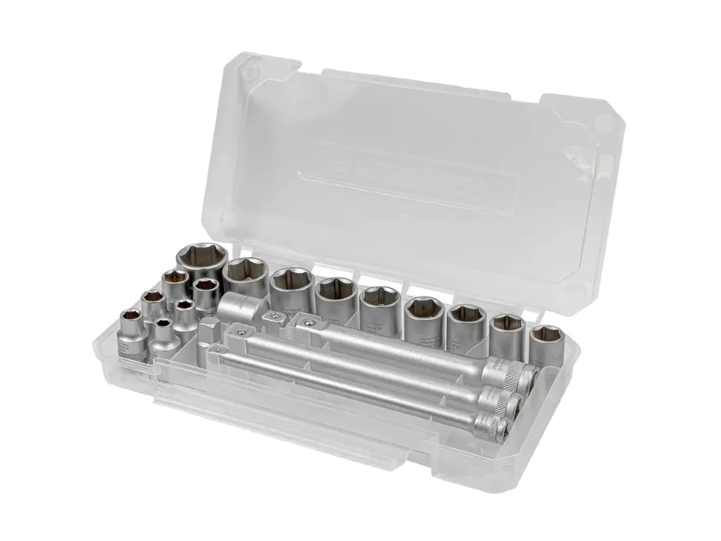 Kompletná a praktická súprava 3/8" určená pre montážne, servisné a dielenské práce. Vďaka širokému rozsahu veľkostí hlavíc a priloženým predlžkám a adaptérom je sada ideálna ako pre profesionálov, tak pre domácu dielňu.