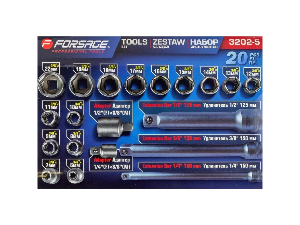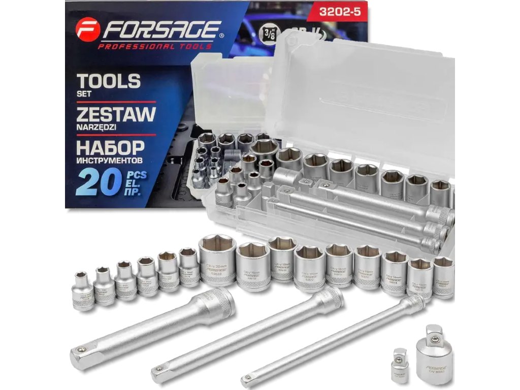 FORSAGE sada nástrčných hlavíc 20 ks s adaptérmi a predlžkami