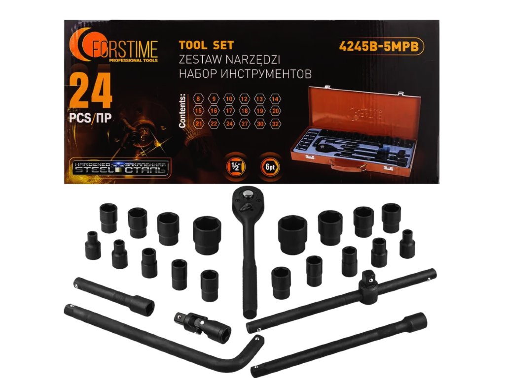 FORSTIME sada nástrčných hlavíc 1/2" 6hranné 8–32 mm, 24 ks + kufor