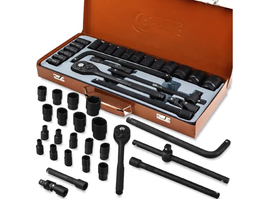 Profesionálna sada náradia 1/2" 24 dielov (6hranné) je ideálnou voľbou pre každého, kto ocenia spoľahlivosť, odolnosť a komfort práce. Obsahuje kompletnú sadu nástrojov určených na montáž a demontáž väčších závitových spojov - ako v profesionálnych dielňach, tak v domácej garáži.