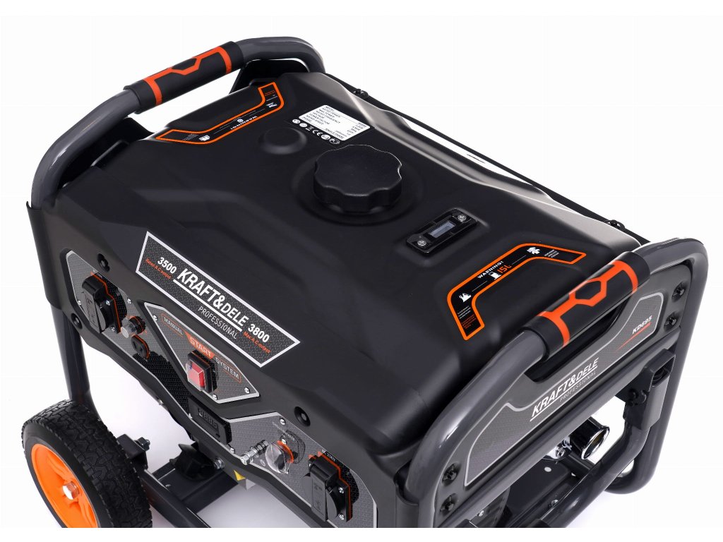 Prenosný jednofázový generátor Generátor 3,2 kW / 3,5 kW KD695 značky Kraft&Dele je určený na výrobu striedavého prúdu 220 V–230 V pomocou štvortaktného spaľovacieho motora OHV.